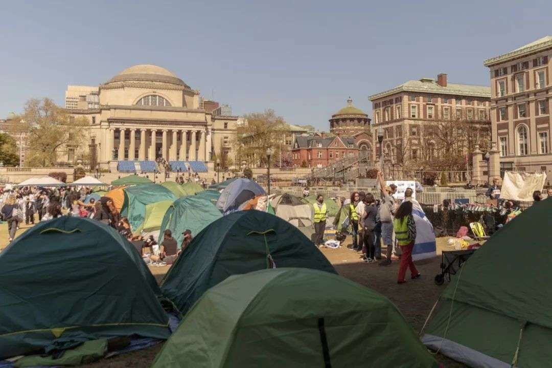 报道称,在哥大百名学生被捕的前后,耶鲁大学的学生通过社交媒体上追踪着混乱的每一分钟。第二天一早,耶鲁大学的抗议学生就迅速在校内搭起了帐篷,以示声援。而当天美国全国其他几十所大学的200多名学生代表在线上会议中商讨如何复制哥伦比亚大学的抗议活动。正是这场会议,让“星星之火开始有了燎原之势”。