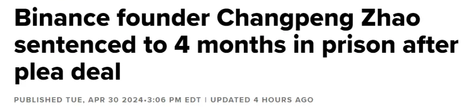 去年11月,赵长鹏和币安已与美国司法部达成认罪和解协议。
