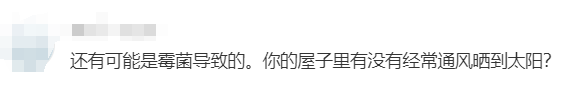 也有网友提醒说,注意检查下是不是屋里有什么发霉或者是有霉菌: