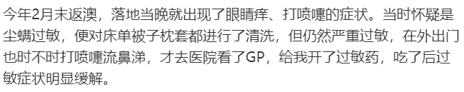 “今年2月末,我返回了澳洲,落地当晚就出现了眼睛痒、打喷嚏的症状...