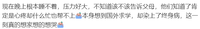 身在异国他乡,身体生病的时候,人就会非常脆弱,这名留学生也不例外。