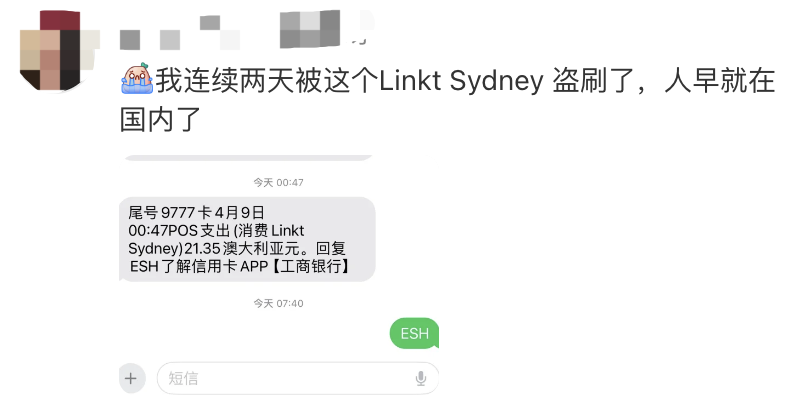 在评论区中,有小伙伴表示,“我连续两天被这个Linkt Sydney 盗刷了,人早就在国内了。”