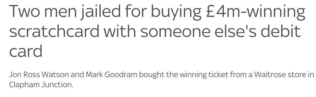 两名小哥盗刷银行卡购买彩票,不料运气爆棚,竟真的中了头奖。