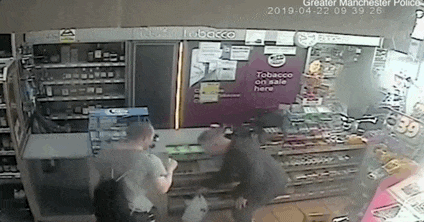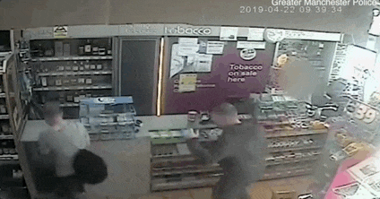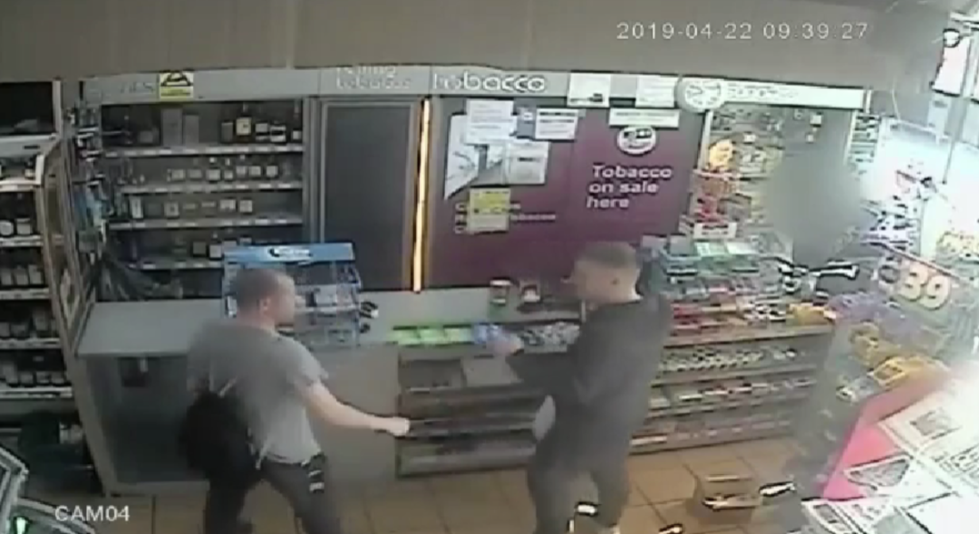 监控画面拍下了两人中奖时的画面。在购买刮刮乐之前,走进彩票店里的两人碰了碰拳,疑似在传递运气。