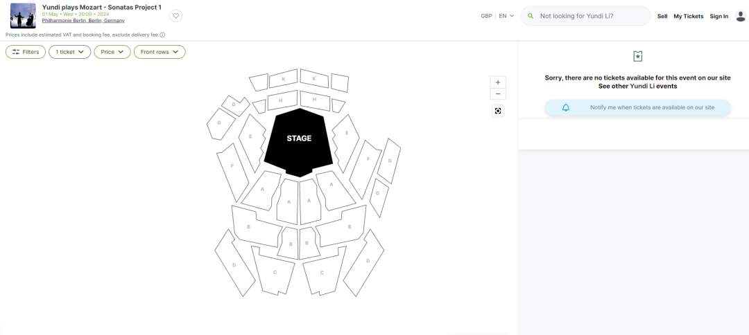 在结束了4月份的奥地利和法国演出,5月,李云迪将重返德国,继续他的巡演之旅。5月1日的柏林站和5 月6日的奥芬巴赫站,内场票都已售罄,只剩下看台上的票可以购买,票价在€46到€167不等。而整个五月,李云迪将在德国——这个巴赫、贝多芬和舒曼的故乡,进行5场演出。