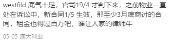 Westfild 底气十足,官司19/4 才判下来,之前物业一直处在诉讼中,新合同1/5 生效,那至少3月底商讨的合同,租金也得过百万吧,谁让人家的律师牛。