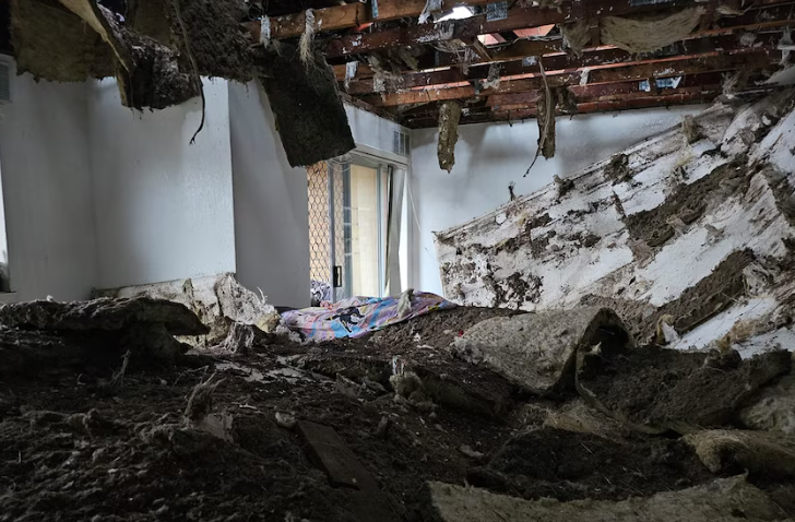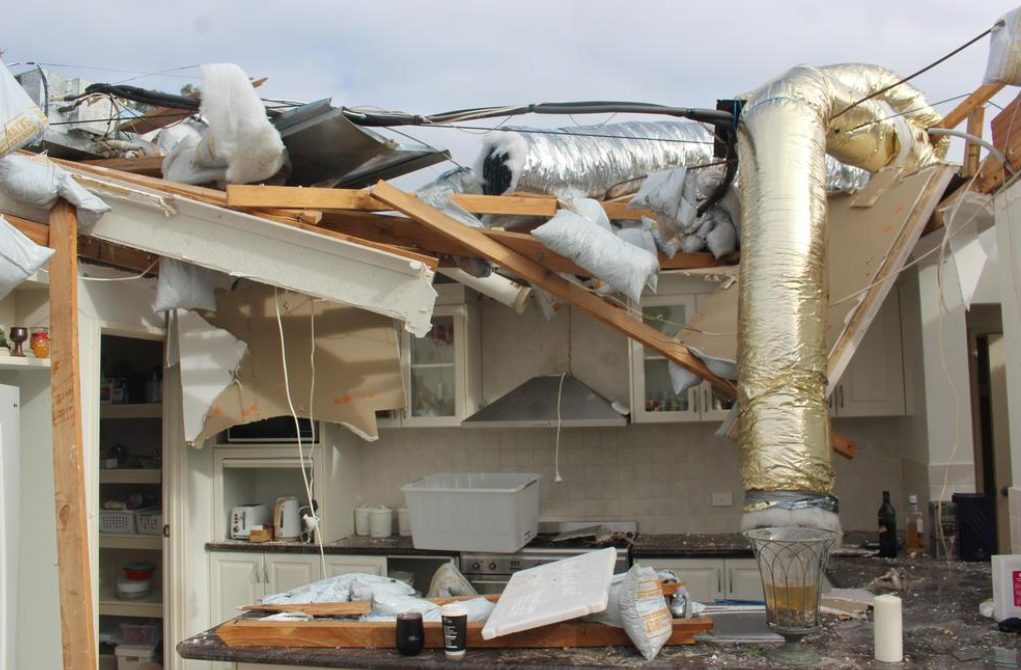 Bartels一度担心自己小命不保。走出地下室后,她看到家里所有天花板都塌了下来,里面的隔热材料重见天日,碎玻璃到处都是。