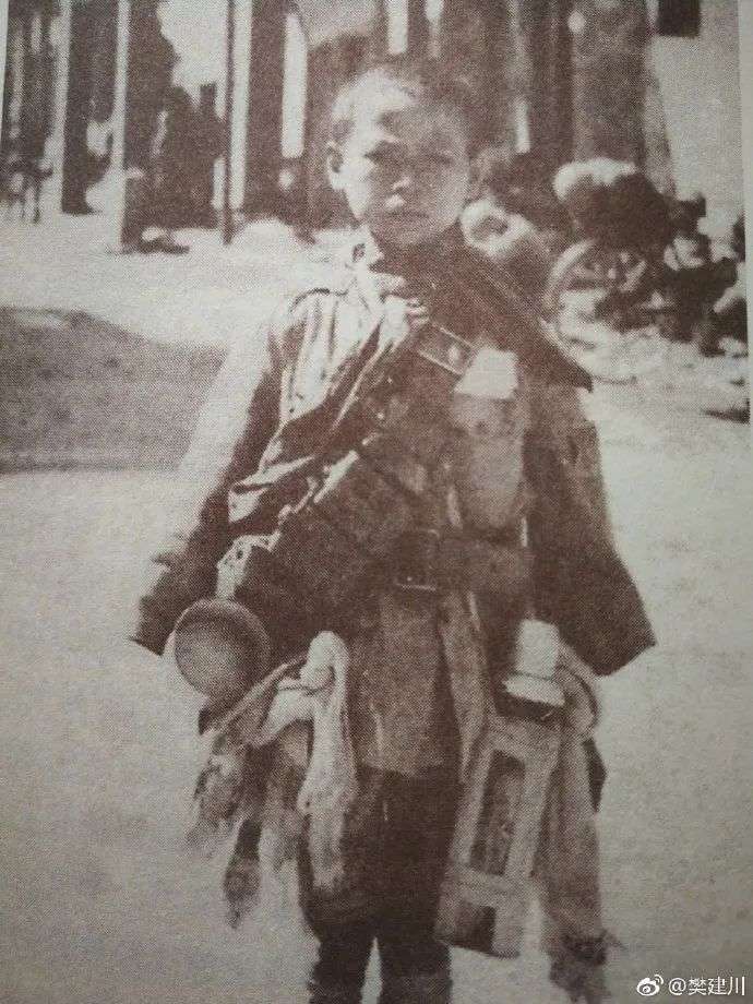 这个孩子名叫季万方,他肃立于那里,两脚立正呈45度,是非常标准的军人姿势。