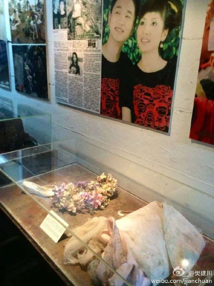 最终,樊建川用木棒找到了一截染血的婚纱。这件婚纱连同新娘曾穿戴过的高跟鞋和花环一起,被安置在了展厅。展品的上方,写有这对新人的爱情故事......
