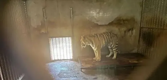 两百多斤的东北虎,像狗一样,每天被关在几平米的铁笼里。