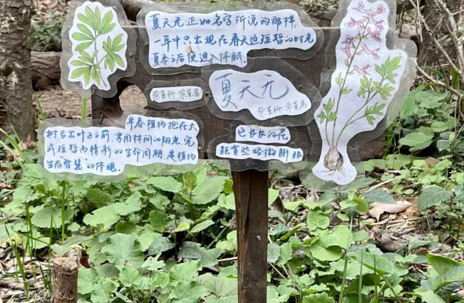 一棵很容易忽略的小草,告示牌上写着它的名字:夏天无。