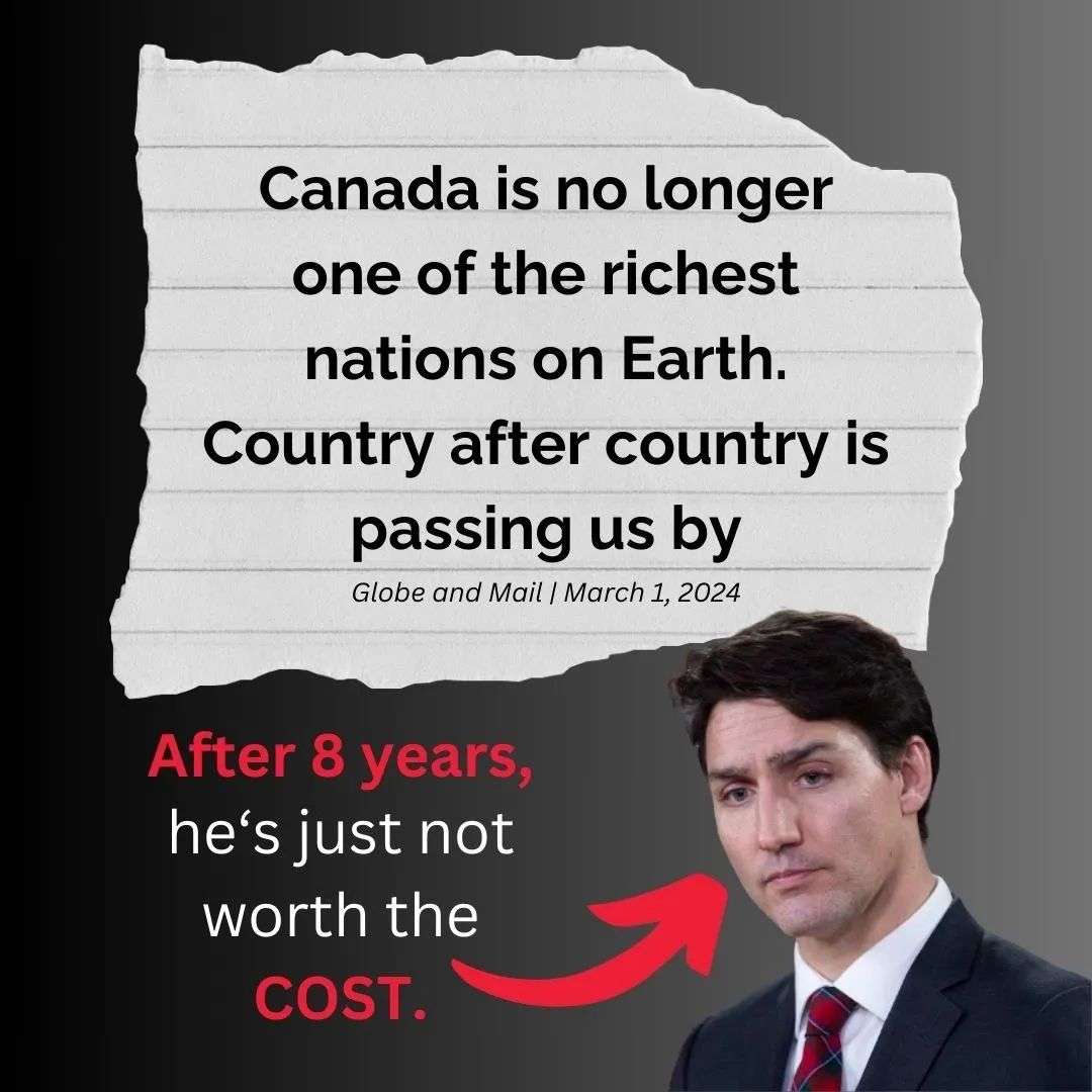 据《环球邮报》三月发表的一篇文章,作者Andrew Coyne表示:“加拿大已不再是地球上最富有的国家之一,一个又一个国家超过我们。”