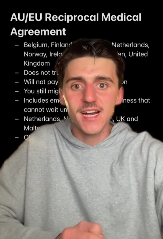 他在TikTok上发布的一则视频中提醒更多澳洲旅客,“如果你是澳大利亚人,今年去欧洲,你需要带上你的医疗保险卡。”