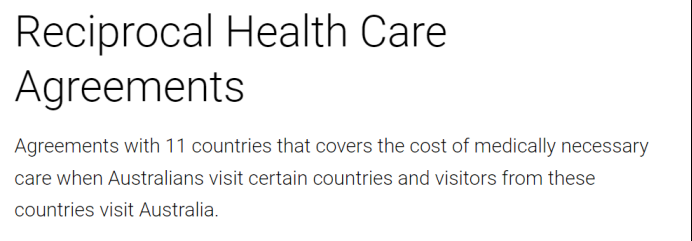 基于澳洲与其他国家签署的医疗服务互惠协定Reciprocal Health Care Agreement (RHCA),持有澳洲Medicare卡的居民,在以下11个国家可以享受该国的医疗福利: