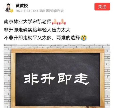 宋凯属于有编制的人才引进,虽然不是“非升即走”,但面临的状况差不多。