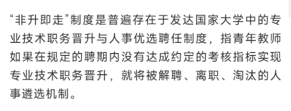 在两大国内顶尖学府的带动下,“非升即走”迅速在国内高校实施开来,可以说是教师从业“物竞天择”的产物。