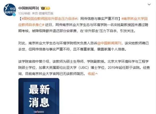 收藏“非升即走”、抑郁症:南京林业大学副教授之死,揭开“青椒”的残酷内幕