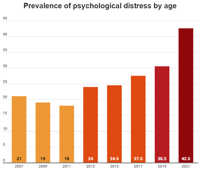 在维州,71% 的女孩和 39% 的男孩容易紧张,58% 的女孩和 23% 的男孩容易惊慌。