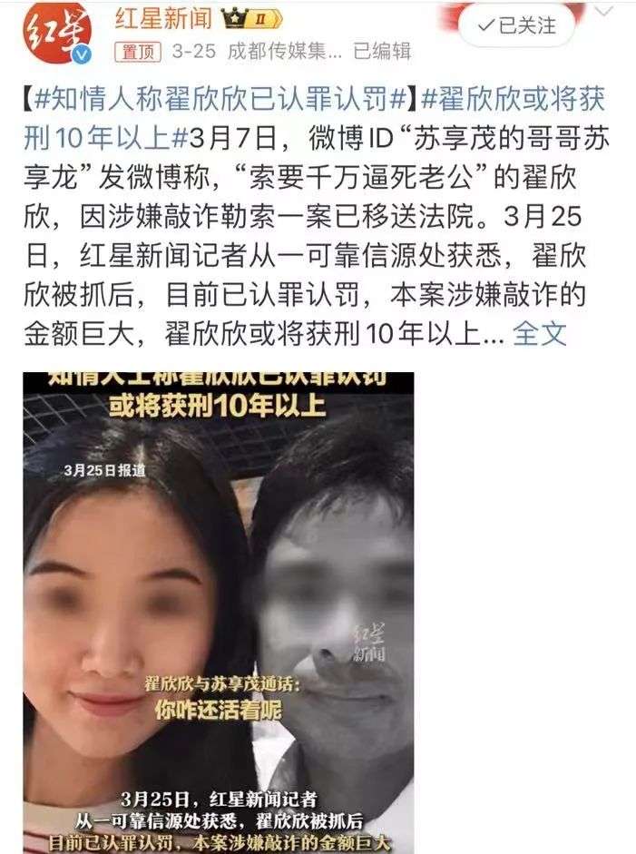 因涉嫌敲诈金额巨大,翟欣欣或面临10年以上有期徒刑。
