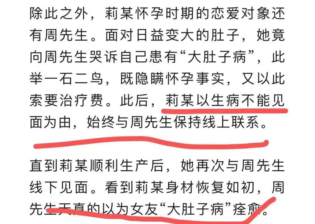 肯定有人好奇,怀着孕的莉某,是怎样立单身人设,骗过周先生的?