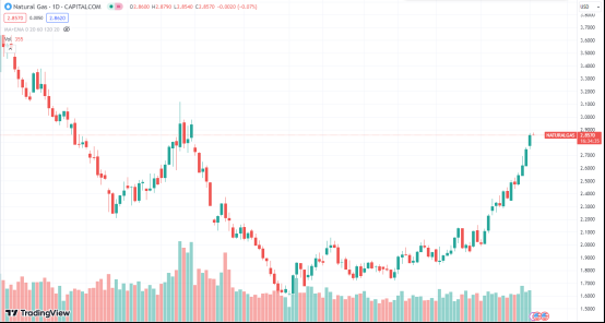 我们看到天然气的价格自2024年3月底以来已经飙升了约60%。