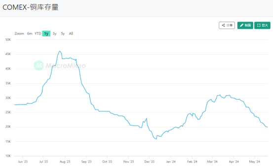 5月15日,COMEX铜期货2407合约价格上涨至5.128美元/磅,约合11300美元/吨,一举突破2022年3月以来的最高点,并刷新了该期货品种的历史纪录。