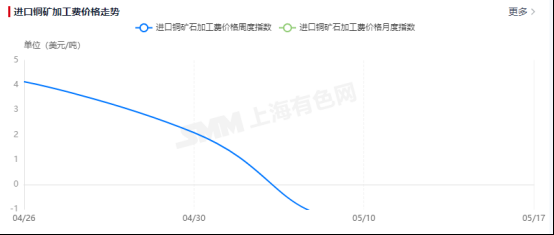 与此同时,中国更是出现了铜矿的价格比铜贵的局面!截至5月17日,SMM进口铜精矿现货加工费指数跌至负1.08美元/吨,继前一周的负1.43美元/吨后,连续两周为负值。铜精矿的价格通常可以简单的理解为LME价格减去铜精矿加工费。通常铜精矿供应充足时,冶炼厂在谈判中占据主动,加工费较高,而铜精矿供应紧张时,反之亦然。