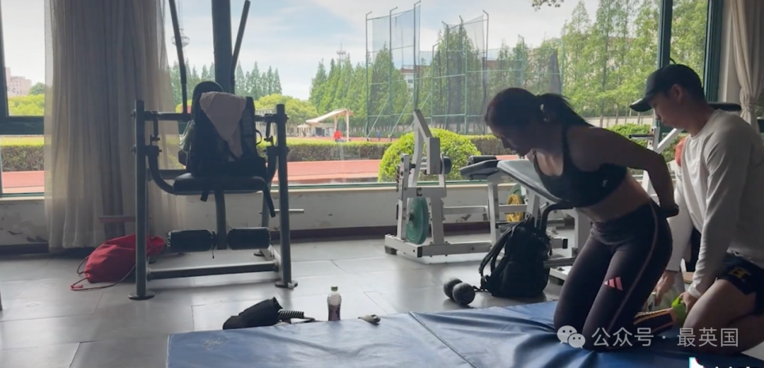 英国报纸还附上了吴艳妮训练中的照片和视频,展示了她紧实的腹肌和清晰可见的马甲线,同时动作也是很高难度的: