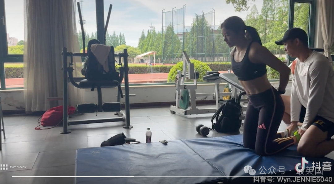 “我刚刚做了五个,你能做几个?跟我来挑战吧!”吴艳妮将训练视频发布在自己的抖音号上,喊话大家来挑战。