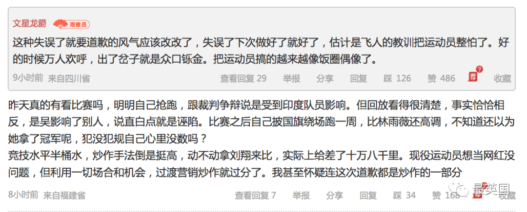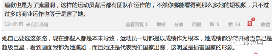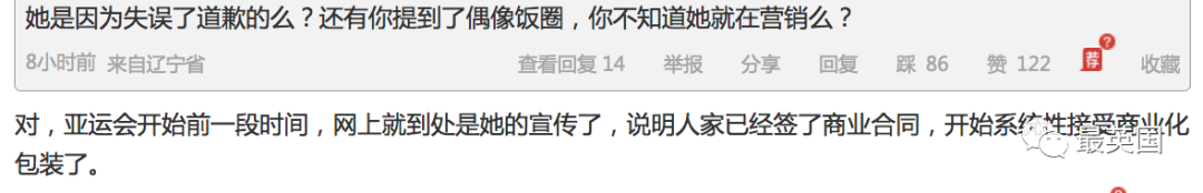 “亚运会前就到处是她的宣传了,人家已经签了商业合同开始接受系统化商业包装了”