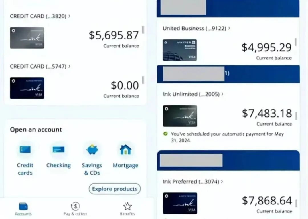 但是认真一看,这孩子手上6张信用卡(公开的)都很牛:1张美国运通,其他5张摩根大通(Chase),而且还都是商业信用卡。