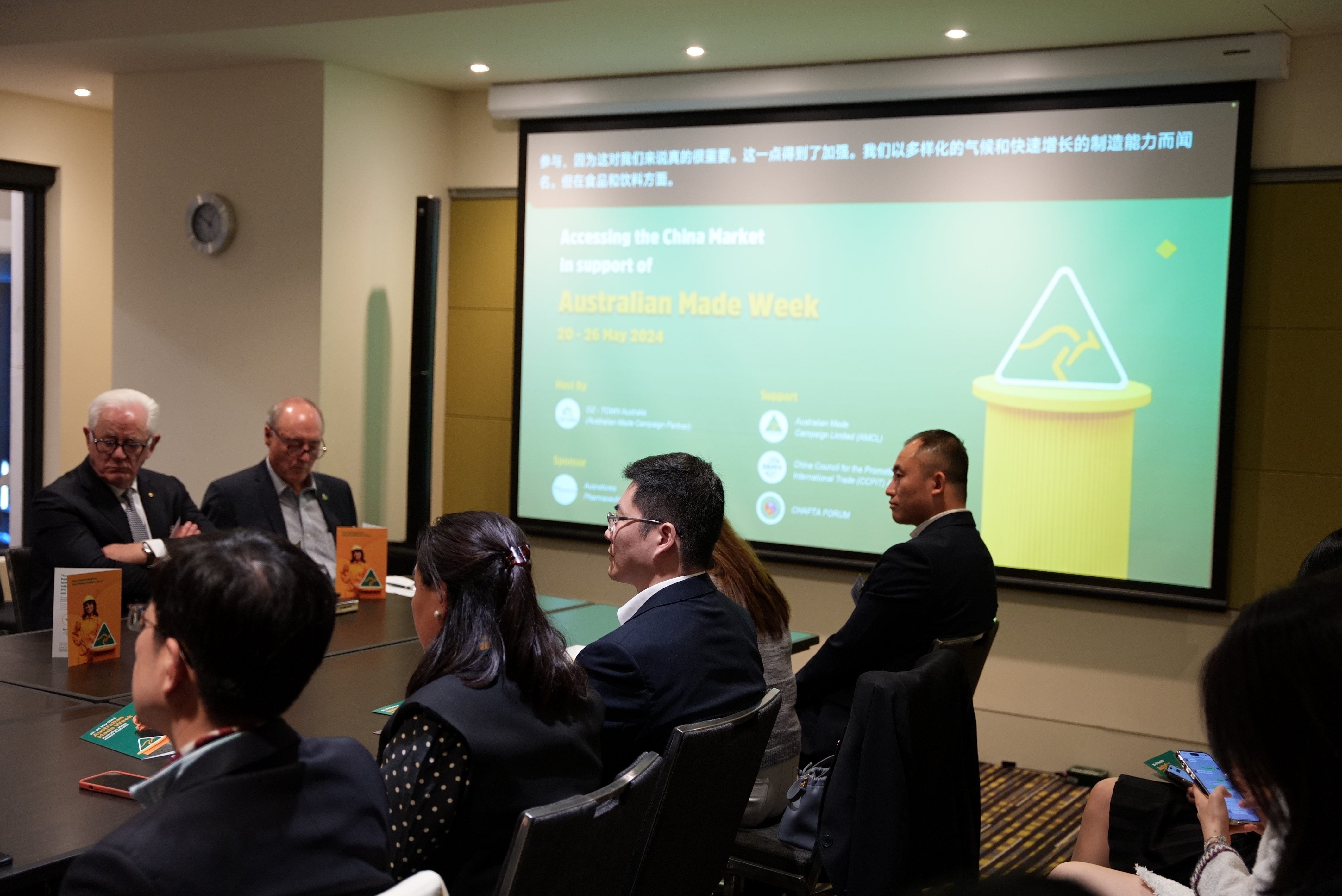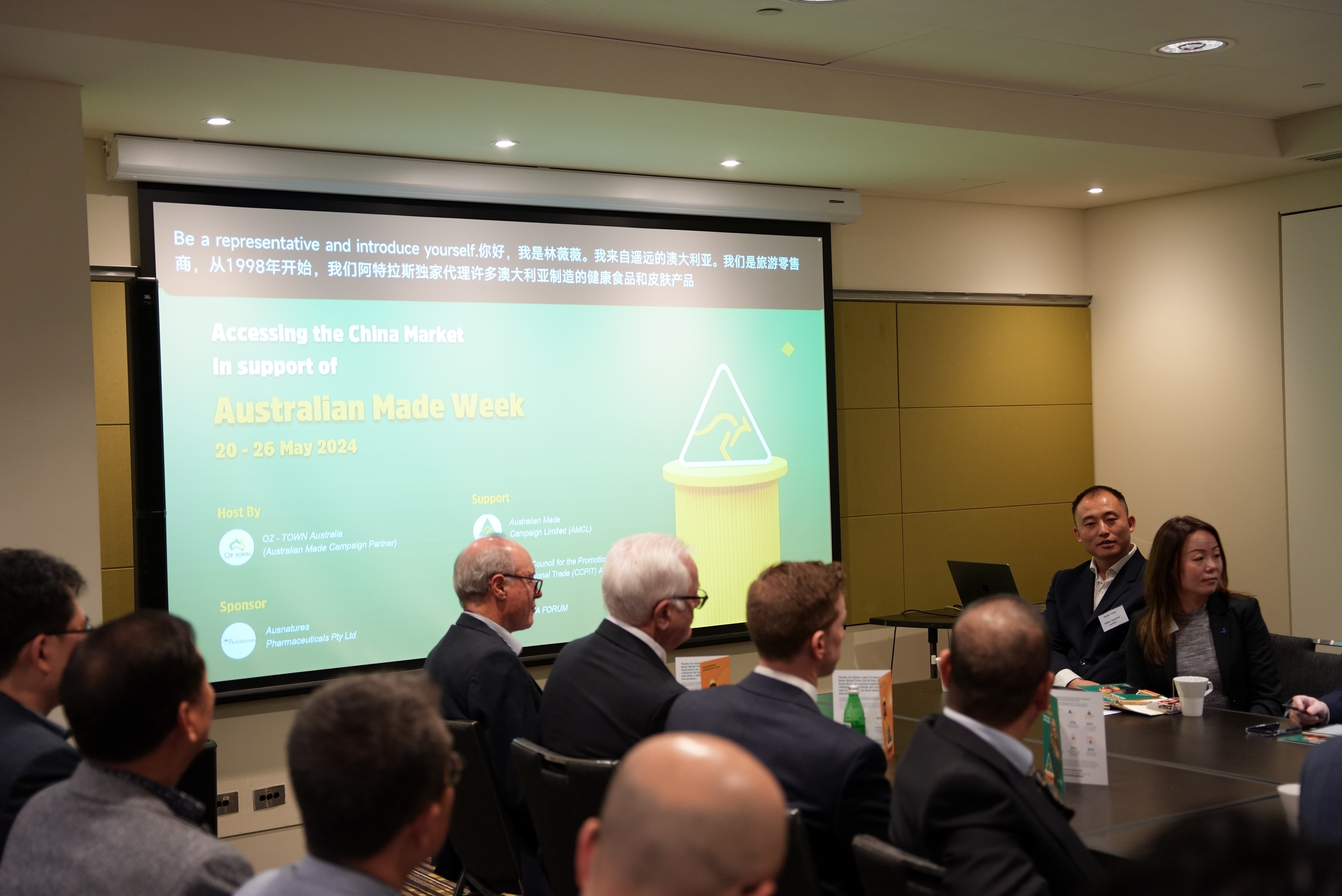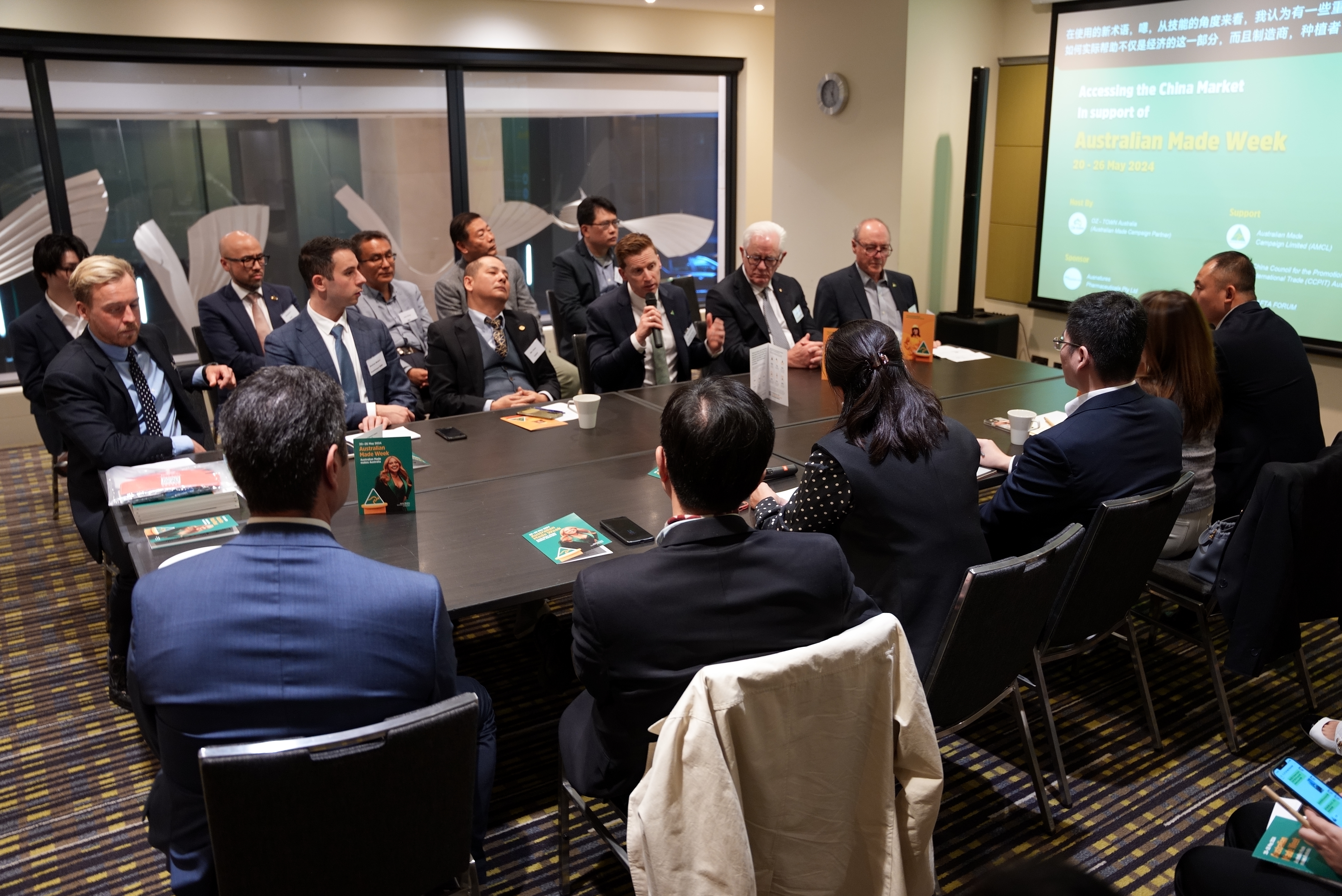 5月23日,澳洲制造周 - 中国专场在悉尼成功举办,活动邀请了对中国市场感兴趣的多个企业参与。活动探讨了澳洲制造相关品牌进入中国市场的策略,促进了澳洲制造优质产品在中国的销售。此次专题活动由OZ-Town与澳洲制造(Australian Made)联合主办,澳健莱(Ausnatures)提供赞助,中国国际贸易促进委员会(CCPIT)和中国澳大利亚自由贸易协会论坛(CHAFTA FORUM)和ACBC( 澳中商业委员会 ) NSW的支持