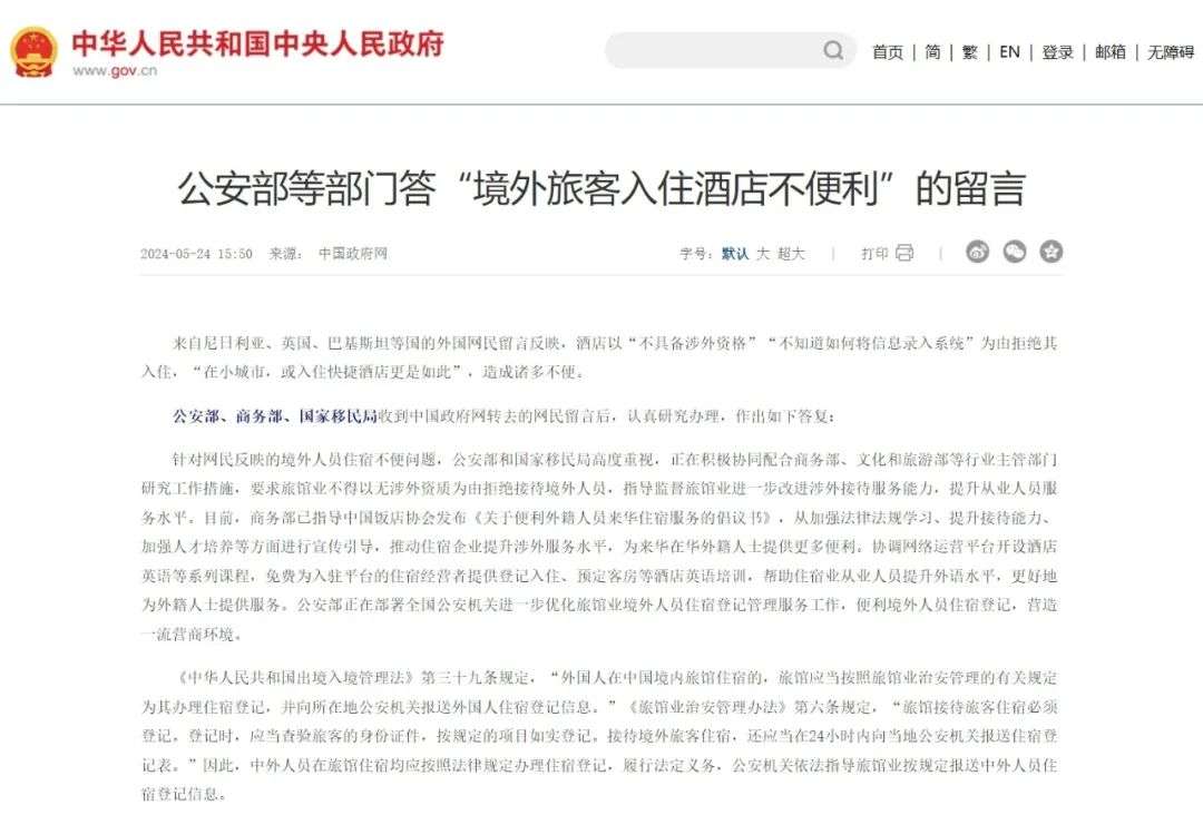 收藏好消息!中国出新规:所有酒店不得拒绝外国人