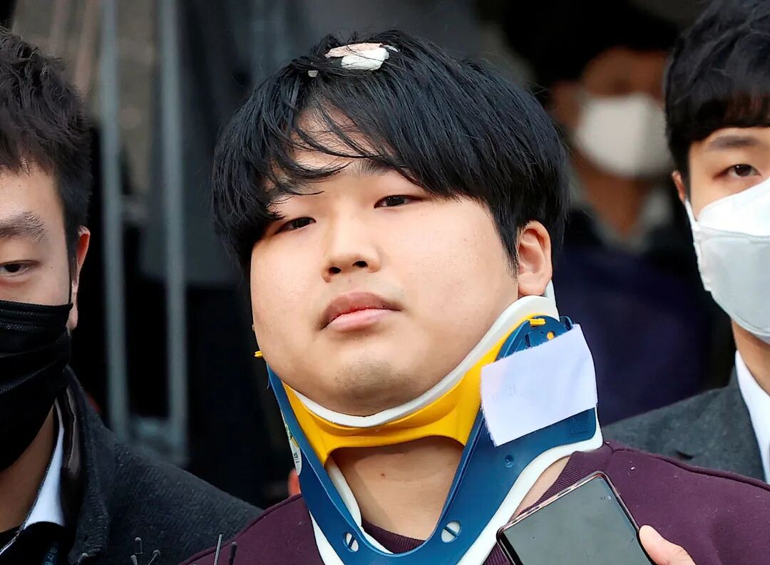 当地时间2020年3月25日,韩国首尔,韩国“N号房”主犯赵主彬(中)离开警察局,将被移交检方作进一步调查。视觉中国 资料图