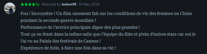 国外评分网Letterboxd上,观众评价《酱园弄》是一部展现中国女性在二战期间生活条件的罕见电影,女主角的表演盛大、顶级。