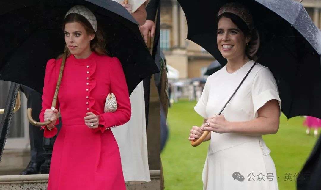 安德鲁王子家的一对姐妹花碧翠丝(Beatruce)、尤金妮(Eugenie)公主双双现身,主打一个红白玫瑰的概念: