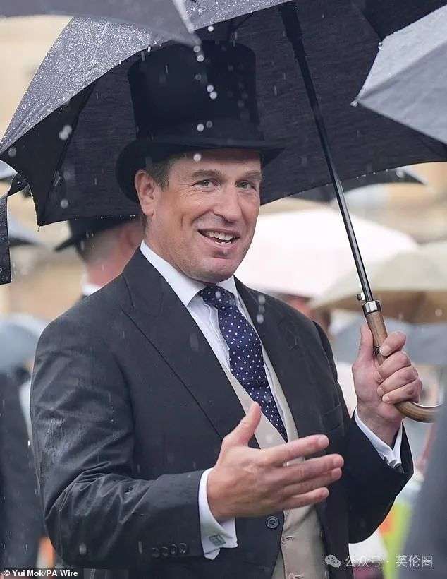 扎拉的哥哥彼得·菲利普斯(Peter Phillips)也到场支持威廉,海军蓝白色波点的领带很是引人瞩目: