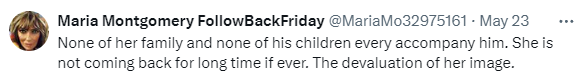 热心网友7号:她(凯特)的家人和孩子们都没有陪伴他(威廉)。她很长时间内都不会回来了,甚至永远不会回来了,她的形象已经贬值了。