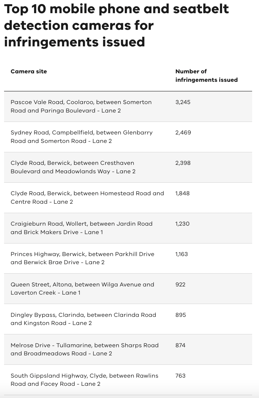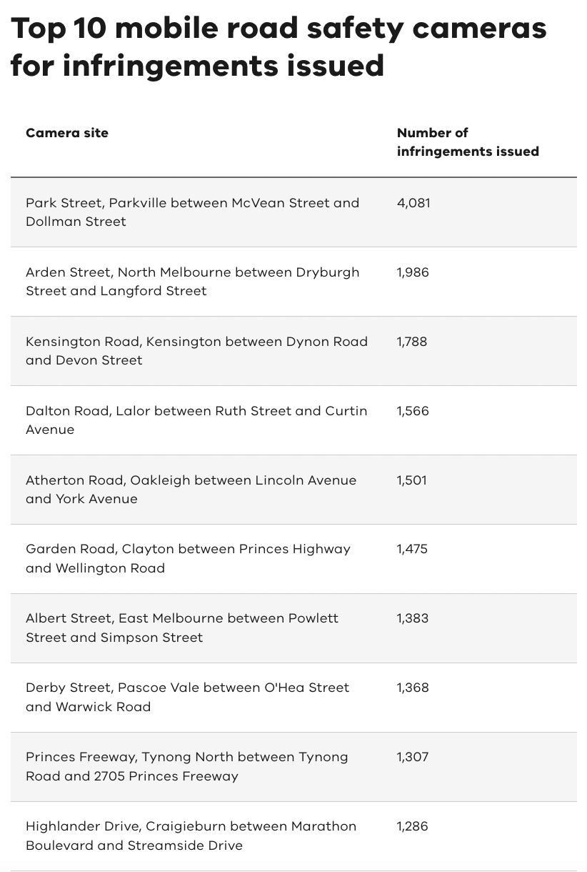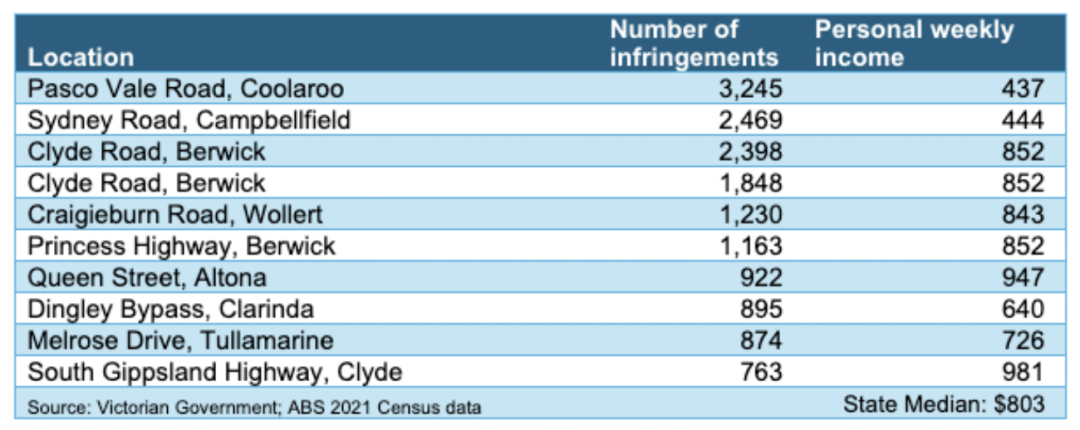 根据维州政府网站Cameras Save Lives的数据,2023年下半年违规率最高的地方是Coolaroo和Campbellfield,这两个地方的居民收入也很低。