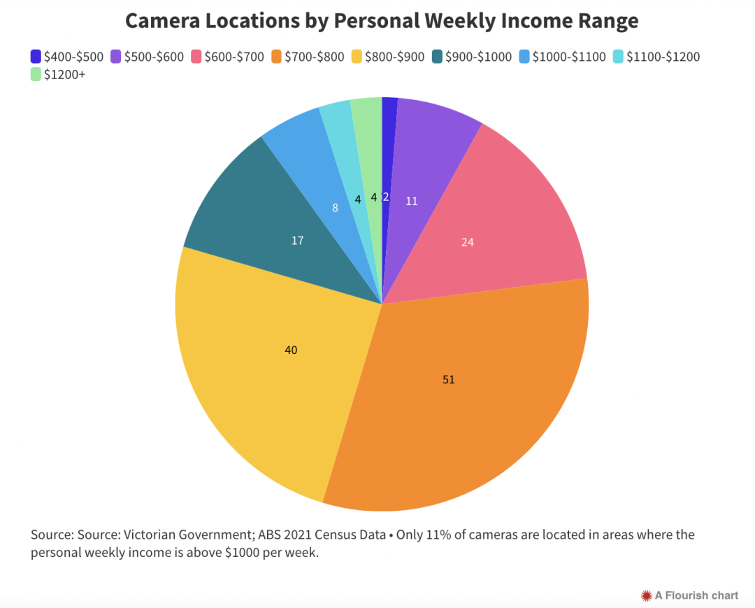 根据《The Citizen》杂志对维州政府数据的分析,超过一半的移动电话和安全带检测摄像头,安装在社会经济比较差的地区(低于州中位数803澳元)。