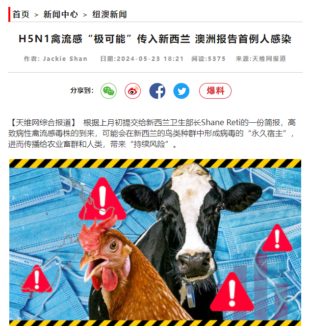 此外,澳洲又一养殖场发现H7N3禽流感病毒!业内人士呼吁:新西兰也应提高警惕!