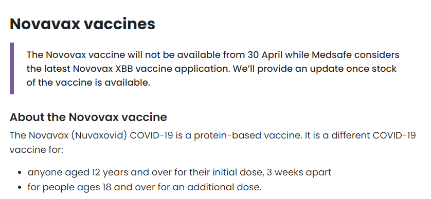 据悉,3月7日上市的XBB疫苗从4月30日起不再可供使用,如恢复使用,Medsafe将会提供相关更新。