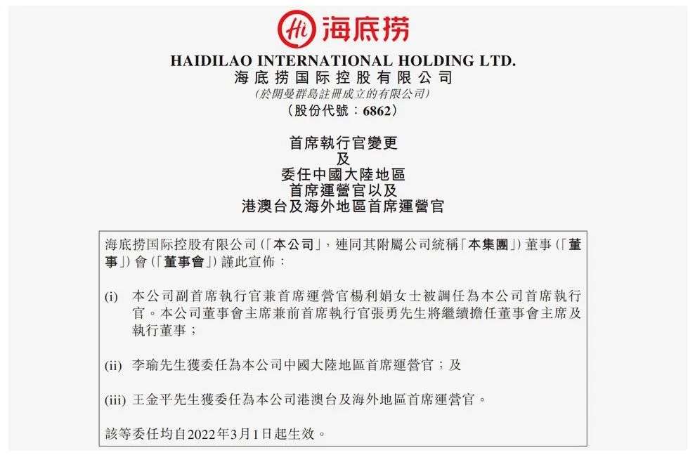 2022年3月1日,杨利娟临危受命,接任CEO,成了海底捞的“急救先锋”。