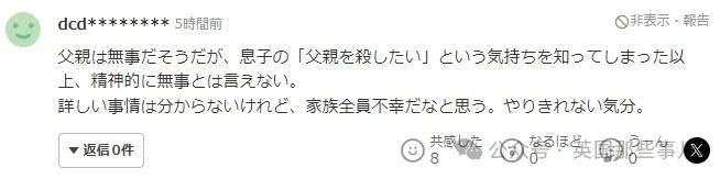“虽然这位父亲现在身体健康,但得知儿子‘想杀死父亲’的想法后,在精神方面不能说是没事吧。