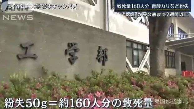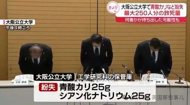 在此之前,大阪市立大学也曾发生过化学品丢失事件。