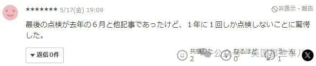 “最后的检查是在去年6月,一年只检查一次也是让人惊呆了。”