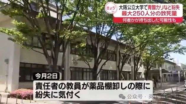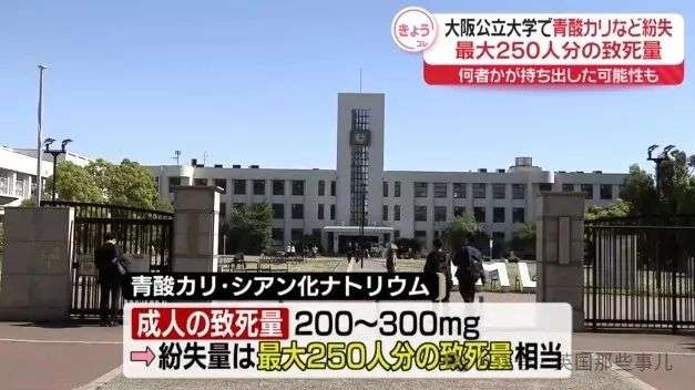 当时,大阪公立大学计划在5月17日正式向警方报案,但不确定剧毒氰化物是丢失,还是被盗。