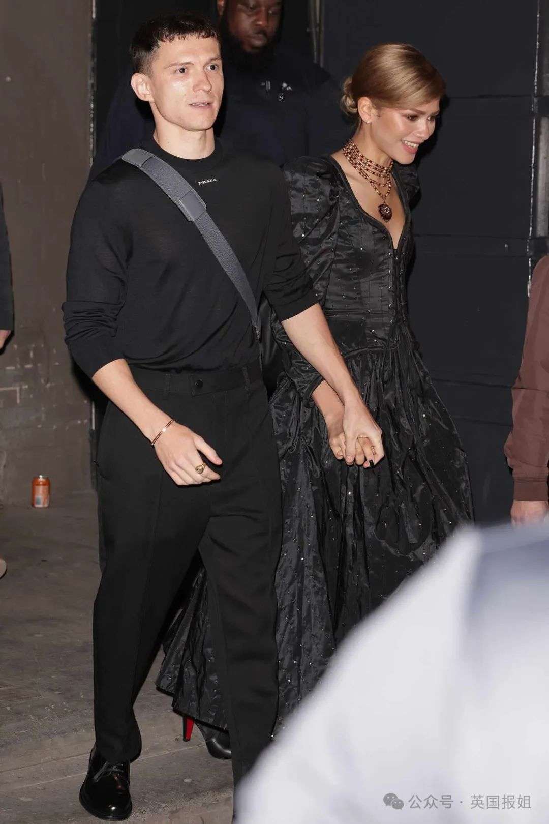 (看完演出和荷兰弟一起离开剧院的赞达亚,据报道她专门挑的复古服饰为男友捧场。)