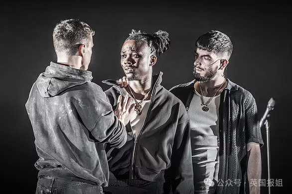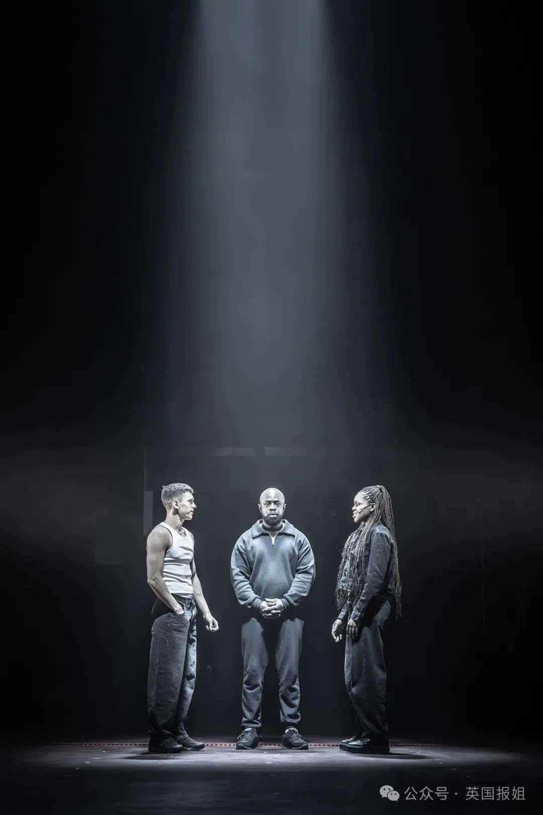而且演员全都穿着统一的帽衫、T恤、袜子和靴子。灯光照不到的地方,甚至分辨不出来谁是谁。