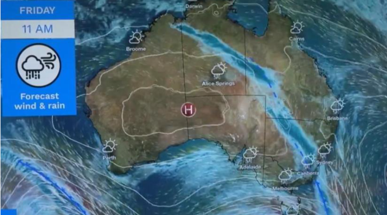 气象学家Mirian Bradbury说,穿越珀斯和西澳西南部的雨锋将逐步穿过澳洲大陆,从周三开始袭击南澳和北领地,然后在周四袭击东海岸。